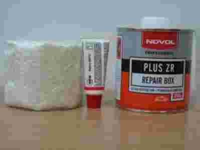 - Zestaw reperacyjny składa się z żywicy poliestrowej, utwardzacza oraz maty szklanej. Uzyskany z niego laminat posiada bardzo dużą wytrzymałość mechaniczną, służy do wypełniania znacznych ubytków materiału (spowodowanych np. korozją), wzmacniania i usztywniania powierzchni metalowych i wykonanych z tworzyw sztucznych. Po utwardzeniu może być szlifowany i pokrywany dowolnymi szpachlówkami poliestrowymi w celu uzyskania odpowiedniej gładkości powierzchni,