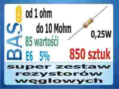 Zestaw rezystorów węglowych 5% E12 0,25W 850 sztuk