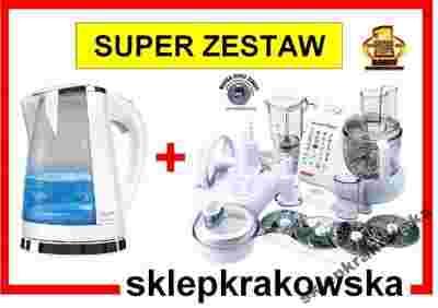 Czajnik o częściowo transparentnym dzbanku. Ciekawy efekt podświetlania wnętrza po podłączniu do sieci (na niebiesko) oraz podczas gotowania wody (na czerwono). Funkcje: