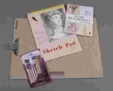 3. 13 elementowy zestaw do rysunku. Zestaw do rysunku, zawierający 13 niezbędnych akcesoriów: 2 pastele suche w kolorze sangwiny, 2 pastele suche