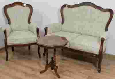 Zestaw salonowy / kawowy: sofa, fotel i stolik