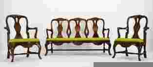 Zestaw Sofa + 2 Fotele w stylu Chippendale - Super