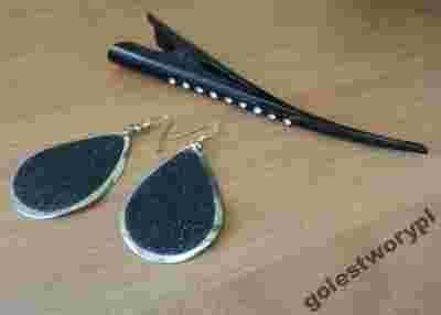 Zestaw Spinka Kolczyki Brokat Czerń KARNAWAŁ