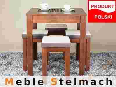 Zestaw Stół 68x68 + 4 taborety buk orzech wenge