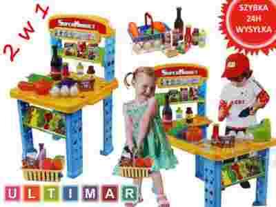 zabawy w sklep. Bogato wyposażona lada, koszyk na