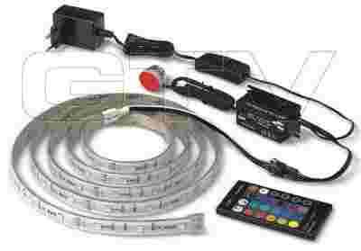 Skład zestawu: zasilacz LED, sterownik LED, 2m pokrytej silikonem taśmy RGB, czujnik podczerwieni, pilot, kompletne przewody połączeniowe z wyłącznikiem.