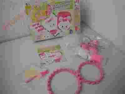 - 6 szpulek włóczek w 2 kolorach (róż, biel),