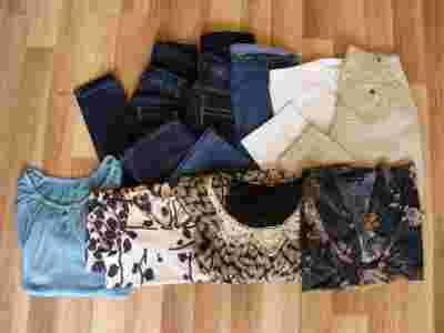 Przedmiotem aukcji jest zestaw 9 sztuk odzieży ciążowej w rozmiarze 36/38, w stanie idealnym i bardzo dobrym. W skład zestawu wchodzą;