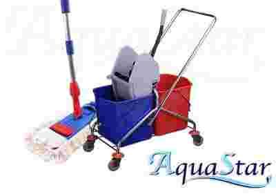 ZESTAW WÓZEK 2X20L CHROMOWANY + MOP PROFESJONALNY
