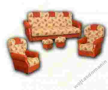 Nowy, wygodny komplet wypoczynkowy w skład którego wchodzi rozkładana wersalka z pojemnikiem na pościel, dwa fotele oraz dwie pufy z pojemnikiem.