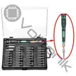 Zestaw wkrętak rękojeść precyzyjna + 30 wymiennych bitów (grotów) renomowanej firmy Proskit do prac warsztatowych, serwisowych oraz użytku domowego przydatny do prac montażowych np. w elektronice, mechanice precyzyjnej, modelarstwie itp.