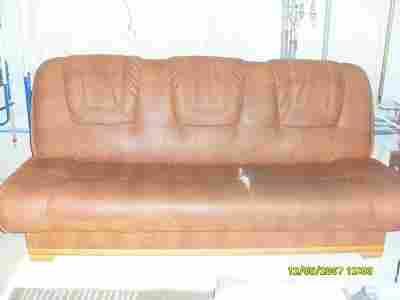 Przedmiotem jest zestaw wypoczynkowy zakupiony w Abrze (cena ok 1800,00) składający się z 2 foteli (stan bdb- minimalne ślady używania) oraz kanapy rozkładanej z pojemnikiem na pościel (stan db+ pęknięta tapicerka na siedzisku wymaga naprawy- zszycia oraz niewielkie przetarcie z boku ).