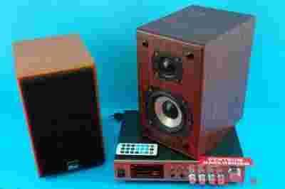 Mały funkcjonalny wzmacniacz 1szt z pilotem z czytnikiem kart oraz wejsciem USB kolumna głosnikowa dwudrozna 2szt do wyboru jeden z dwóch kolorów