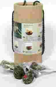 Zestaw dziesięciu herbat kwitnących zapakowanych w ekologiczne pudełko prezentowe. Każda kulka jest ręcznie zwijane i pakowana hermetycznie w Chinach, co daje gwarancję długotrwałej świeżości.