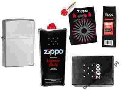 ZESTAW ZIPPO: ZAPALNICZKA SATIN + BENZYNA + INNE..