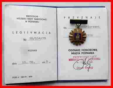 ZG0351 Poznań zasłuzony obywatel 1979 + legitymacj
