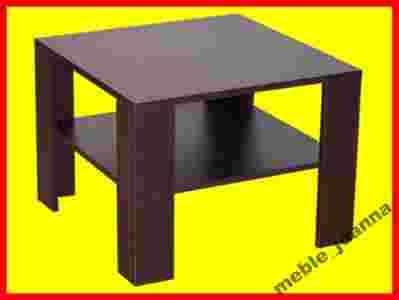 Stolik wykonany w całości z płyty laminowanej o grubości 18 mm. Blat oraz nogi wykończone okleiną PCV. Okleina ta charakteryzuje się wysoką wytrzymałością na uszkodzenia mechaniczne oraz nie odkleja się od krawędzi. U dołu półka. Stolik na zdjęciach wykonany jest w kolorze venge. Kolory można dowolnie komponować z kolorów określonych u dołu aukcji.