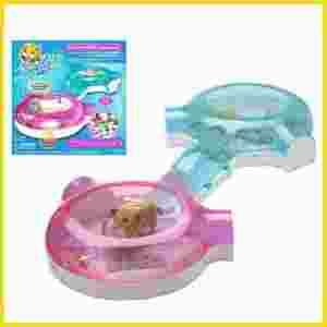 Oto domek dla chomików Zhu Zhu Pets. Zhu Zhu Pets to seria chomików z których każdy ma niepowtarzalną osobowość i wydaje charakterystyczne, zabawne dźwięki. Chomiki wymagają opieki, pieszczot, wspólnej zabawy są żywiołowe i chętne do zabawy. Zaraz po wyjęciu z pudełka możesz usłyszeć jak Twój chomik "skrzeczy" i wydaje zabawne dźwięku po naciśnięciu noska. Aby pozwolić mu odkrywać nowe tereny wystarczy włączyć przycisk znajdujący się na jego plecach. Kiedy podczas "odkrywania" chomik uderzy się w nos, wyda alarmujący dźwięk, wycofa się i będzie odkrywał inne wspaniałe miejsca.