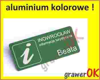 bardzo trwałego i eleganckiego identyfikatora z kolorowego aluminium anodowanego o grubości 1 mm,