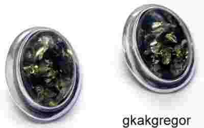 ZIELONY BURSZTYN - OWALNE KLASYCZNE KLIPSY srebrne