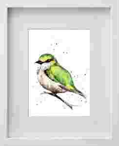 Zielony ptaszek - akwarela