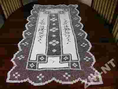 Zdobienia na obrusie wykonane są z dużą starannością i precyzją.