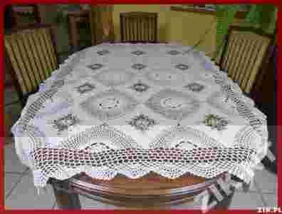 o rozmiarze 130x180cm prostokąt (tolerancja w rozmiarze +/- 10cm) Zdobienia na obrusie wykonane są z dużą starannością i precyzją