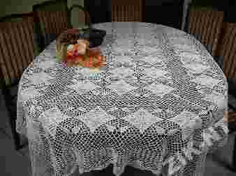 Przedmiotem jaki państwu oferujemy jest obrus naturalny szydełkowy
