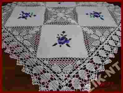 o rozmiarze 85x85cm (tolerancja w rozmiarze +/- 5cm) Zdobienia na obrusie wykonane są z dużą starannością i precyzją
