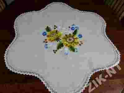 Zdobienia na obrusie wykonane są ręcznie z dużą starannością i precyzją.