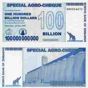 Zimbabwe 100 [zasłonięte] 000 000 dolarów P-64 2008 UNC