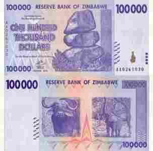 Zimbabwe 100 000 Dolarów P-75 Stan I UNC rzadki
