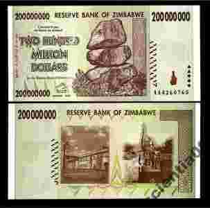 Zimbabwe 200 MILLION DOLLARS P-81 2008 UNC