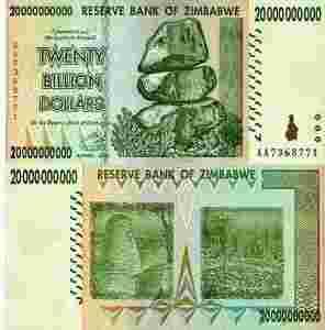 Zimbabwe 20 [zasłonięte] 000 000 Dolarów P-86 2008 UNC