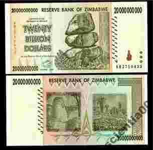 Zimbabwe 20 BILLION DOLLARS P-86 2008 UNC