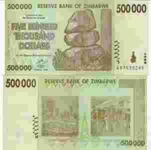 Zimbabwe 500 000 Dolarów 2008 P-76 Stan I UNC