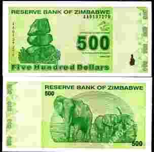 ZIMBABWE 500 Dolarów 2009 P-98 Stan I UNC.seria AA