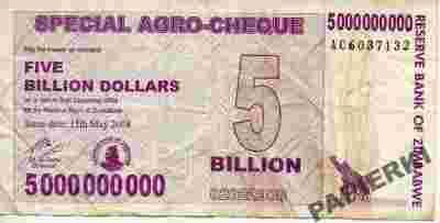Zimbabwe 5 000 [zasłonięte] 000 Dolarów 2008