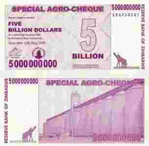 Zimbabwe 5 000 [zasłonięte] 000 Dolarów P-61 Stan I UNC
