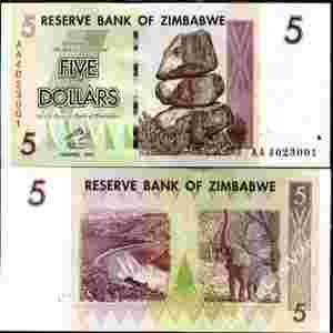 Zimbabwe 5 Dolarów P-66 2007 Stan I UNC.