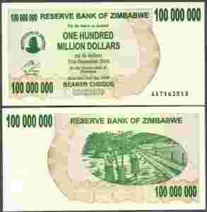 ### ZIMBABWE - P58 - 2008 - 100[zasłonięte]000 DOLARÓW