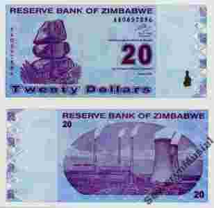 Zimbabwe UNC 20 dolarów P95 - 2009 TANIO!! i inne