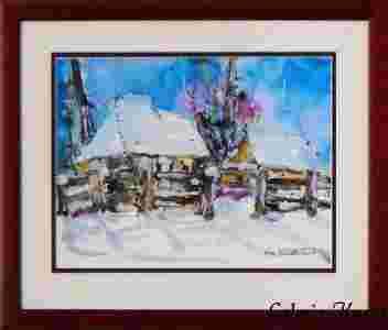 Obraz w całości ręcznie malowany farbami wodnymi na wysokiej jakości papierze,