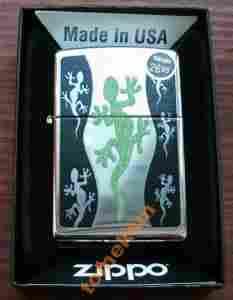 ZIPPO 21149 GREEN LIZARD BRUSHED CHROME