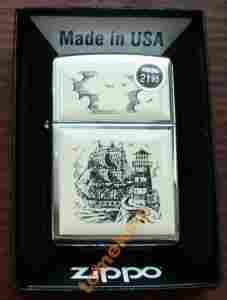 ZIPPO 359 SCRIMSHAW SHIP EMBLEM HIGH POLISH CHROME