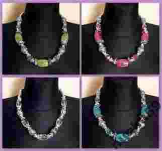 Zjawiskowy Naszyjnik Korale Crackle Srebrne Kulki