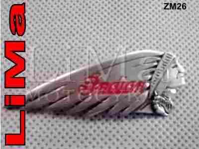 ZNACZEK METALOWY INDIANIN Z NAPISEM