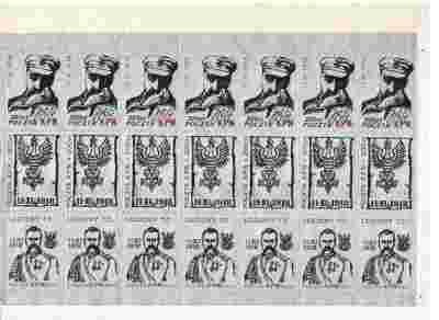 PRZEDMIOTEM AUKCJI - ARKUSZ-(21ZN)-PIŁSUDSKI KILKA SŁÓW O ZNACZKACH POCZTY PODZIEMNEJ: Szczególna wartość znaczków z tego okresu wynika z faktu, że nie są one wydawane oficjalnie lecz drukowały je niezależne drukarnie w konspiracji przed reżimem rządzącym. Za ich posiadanie lub rozprowadzanie można było się narazić na kary więzienia, i inne szykany. Czynem wręcz heroicznym było drukowanie czegokolwiek poza oficjalnym obiegiem. Znaczki Solidarności podziemnej pełniły ważną rolę w walce z reżimem komunistycznym. Oprócz wartości poznawczych i artystycznych były dla ludzi symbolem braku uległości wobec władzy. Dochód ze sprzedaży znaczków przeznaczony był na utrzymanie podziemnych struktur Solidarności. Pieniądze otrzymane z ich sprzedaży pokrywały koszty papieru, i innych materiałów poligraficznych. Cena znaczka już w okresie jego wydawania była stosunkowo wysoka, stanowiła formą cegiełki wspierającej Solidarność. Poczta podziemna to nie była strukturą jednolitą, istniało wiele niezależnych wydawnictw, które powstawały w sposób żywiołowy. Jakość druku zależała od możliwości technicznych jakimi dysponowały. Często był to słaby papier, jednobarwny wydruk i nierówno obcięte brzegi. Niektóre drukarnie robiły prawdziwe perełki, które niczym nie ustępowały znaczkom wydawanym oficjalnie. Precyzja wykonania druku wielobarwnego oraz ząbkowania zaskakuje bardzo dobrą jakością jak na ówczesne możliwości poligrafii. Pierwsze znaczki stanu wojennego były robione już w obozach internowania, z oczywistych przyczyn miały bardzo mały nakład. W latach późniejszych były produkowane przez drukarnie działające przy tak znanych wydawnictwach jak: Solidarność, Solidarność Walcząca, Niezależne Zrzeszenie Studentów, Ugrupowanie Polityczne Służba Wolnej Polski, Poczta Niezależna, Niezależna Poczta Pomorza, Poczta KPIJ, Poczta Kraków, Wydawnictwo Niezłomni, Poczta Polowa, Wydawnictwo Niezależne, Ruch Wolność i Pokój, Federacja Młodzieży Walczącej i wiele innych. Szacuje się, że w konspiracji, w wydawnictwach drugiego obiegu wyprodukowano nawet do 35 tysięcy znaczków i bloków, a przeciętny nakład znaczka to kilka tysięcy egzemplarzy. Obecnie znaczki te opisane są w zagranicznych katalogach: Paubaix we Francji i Rapperswil w Szwajcarii oraz w polskim: trzy-tomowy katalogu warszawskim.