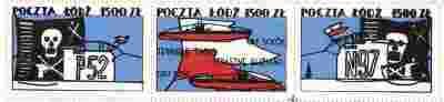 PRZEDMIOTEM AUKCJI - BLOCZEK - 3 ZNACZKI WYMIARY: 19X4CM KILKA SŁÓW O ZNACZKACH POCZTY PODZIEMNEJ: Szczególna wartość znaczków z tego okresu wynika z faktu, że nie są one wydawane oficjalnie lecz drukowały je niezależne drukarnie w konspiracji przed reżimem rządzącym. Za ich posiadanie lub rozprowadzanie można było się narazić na kary więzienia, i inne szykany. Czynem wręcz heroicznym było drukowanie czegokolwiek poza oficjalnym obiegiem. Znaczki Solidarności podziemnej pełniły ważną rolę w walce z reżimem komunistycznym. Oprócz wartości poznawczych i artystycznych były dla ludzi symbolem braku uległości wobec władzy. Dochód ze sprzedaży znaczków przeznaczony był na utrzymanie podziemnych struktur Solidarności. Pieniądze otrzymane z ich sprzedaży pokrywały koszty papieru, i innych materiałów poligraficznych. Cena znaczka już w okresie jego wydawania była stosunkowo wysoka, stanowiła formą cegiełki wspierającej Solidarność. Poczta podziemna to nie była strukturą jednolitą, istniało wiele niezależnych wydawnictw, które powstawały w sposób żywiołowy. Jakość druku zależała od możliwości technicznych jakimi dysponowały. Często był to słaby papier, jednobarwny wydruk i nierówno obcięte brzegi. Niektóre drukarnie robiły prawdziwe perełki, które niczym nie ustępowały znaczkom wydawanym oficjalnie. Precyzja wykonania druku wielobarwnego oraz ząbkowania zaskakuje bardzo dobrą jakością jak na ówczesne możliwości poligrafii. Pierwsze znaczki stanu wojennego były robione już w obozach internowania, z oczywistych przyczyn miały bardzo mały nakład. W latach późniejszych były produkowane przez drukarnie działające przy tak znanych wydawnictwach jak: Solidarność, Solidarność Walcząca, Niezależne Zrzeszenie Studentów, Ugrupowanie Polityczne Służba Wolnej Polski, Poczta Niezależna, Niezależna Poczta Pomorza, Poczta KPIJ, Poczta Kraków, Wydawnictwo Niezłomni, Poczta Polowa, Wydawnictwo Niezależne, Ruch Wolność i Pokój, Federacja Młodzieży Walczącej i wiele innych. Szacuje się, że w konspiracji, w wydawnictwach drugiego obiegu wyprodukowano nawet do 35 tysięcy znaczków i bloków, a przeciętny nakład znaczka to kilka tysięcy egzemplarzy. Obecnie znaczki te opisane są w zagranicznych katalogach: Paubaix we Francji i Rapperswil w Szwajcarii oraz w polskim: trzy-tomowy katalogu warszawskim.