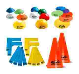 Komplet pachołków treningowy przeznaczony do różnego rodzaju oznaczenia terenu w grach, zabawach czy ćwiczeniach i treningach. Wykonane z trwałego i elastycznego tworzywa PE.